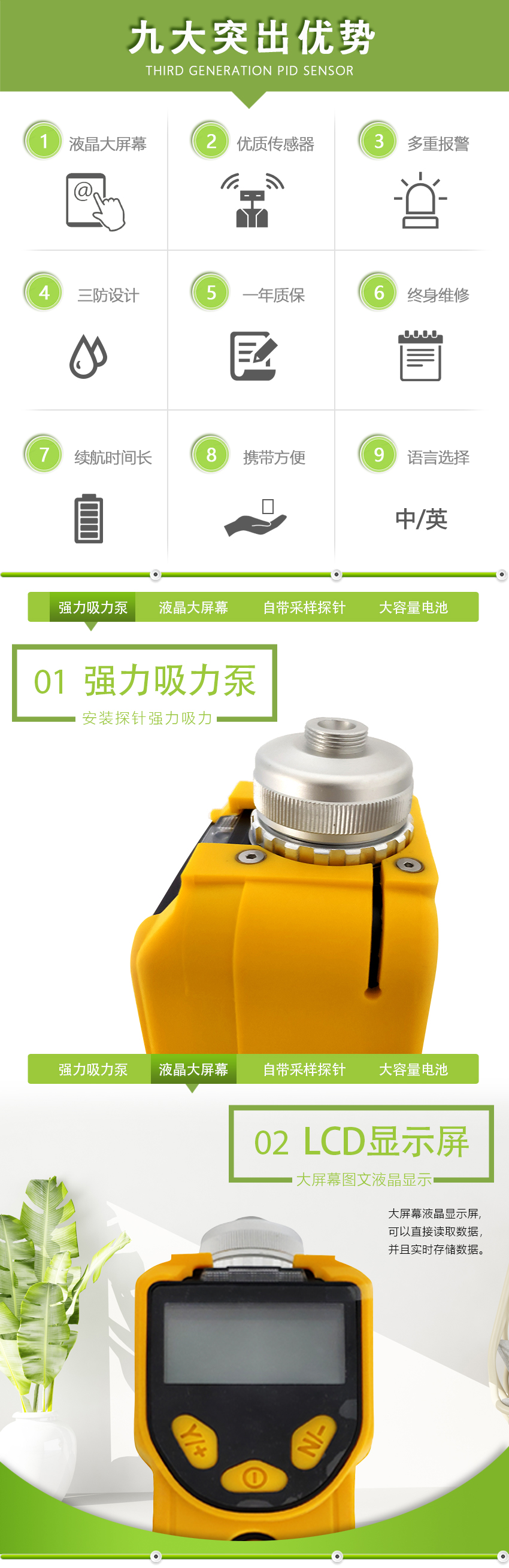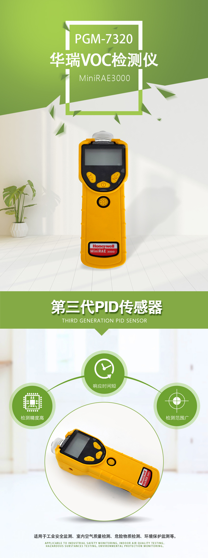 1、第三代PID傳感器,響應時間短,檢測范圍寬