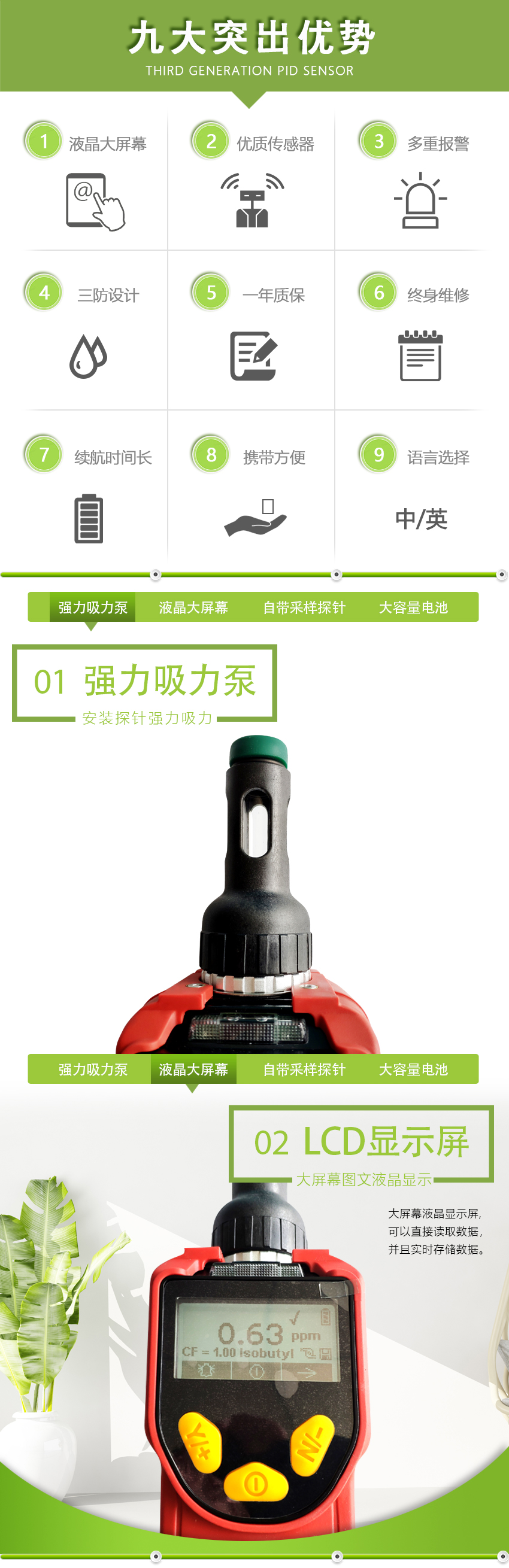 1、第三代PID傳感器,響應(yīng)時間短,檢測范圍寬