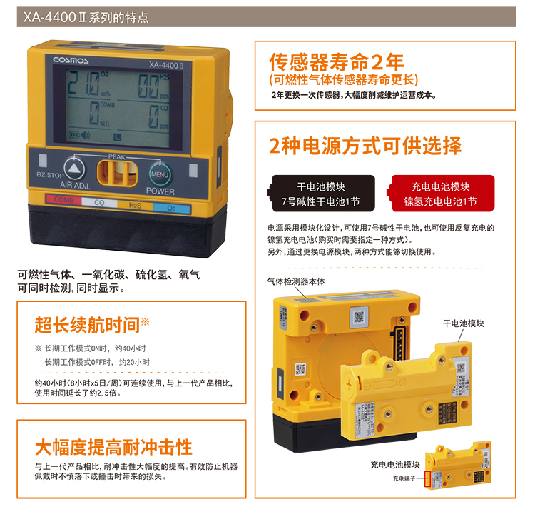 XA-4400Ⅱ系列復合式氣體檢測器,可以同時檢測4種氣體,同時檢測,同時顯示。采用接觸燃燒式檢測原理,用于檢測可燃氣體濃度值,XA-4400II的檢測范圍0~100%LEL,具有聲光報警功能。