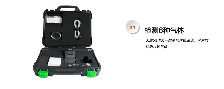 天鷹5X作為目前市場上常見的多氣體檢測儀,突破原有的四合一、五合一氣體檢測儀,在可以檢測可燃氣/氧氣/一氧化碳/硫化氫這四種工業領域常見的危害性氣體外,還配備了用于檢測二氧化硫/氯氣/氨氣/氰化氫/磷化氫/二氧化氯的電化學傳感器,除此之外天鷹5X還可以增配一個紅外傳感器用于二氧化碳或可燃性氣體(碳氫化合物)的體積比濃度,使得同時檢測氣體數量達到六種。
