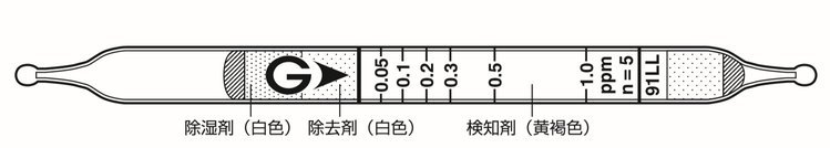 檢測線:0.03ppm(抽氣5次)顏色變化:黃褐色→粉色