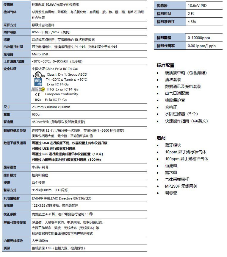 ? 創新型的PID 傳感器,耐潮濕與防污染,延長運行時間;內置溫濕度傳感器,保證檢測準確性