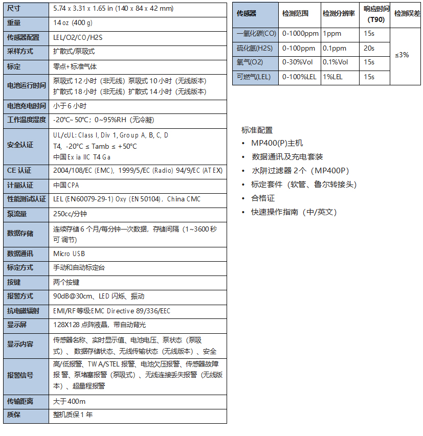 MP400(P)便攜式四氣體檢測儀可同時對可燃氣體、氧氣、一氧化碳和硫化氫進行準確檢測,同時給使用者帶來了前 所未有的友好以及靈活性的無線檢測體驗。MP400(P)可以預(yù)見對使用者以及裝置潛在威脅,可連續(xù)性檢測以及為決 策者提供更快的反應(yīng)時間和科學(xué)決斷。MP400(P)具有泵吸式和擴散式兩個版本。可被廣泛的應(yīng)用在冶金、石油石 化、化工、消防、電信、市政、污水處理等行業(yè)。