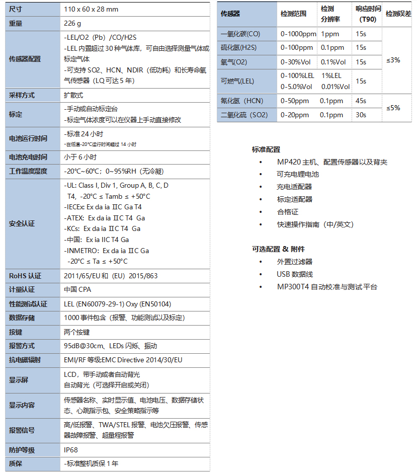 產(chǎn)品名稱:盟莆安MP420四合一氣體檢測儀