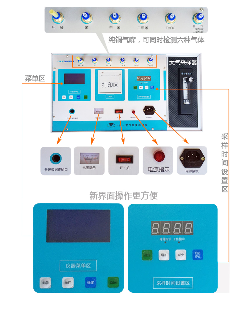新款微型室內空氣質量檢測儀適合于監理、監測機構、環境檢測站、檢測中心、治理公司、裝修裝飾公司、建筑公司、車間廠礦、也可用于科研、教學、實驗室。每項氣體檢測都由微電腦自動控制,達到一定相應的時間后,可自動停止工作,并可讀數,液晶顯示,打印得出結果.且操作簡便、設計合理、外形美觀。該產品彌補了室內空氣質量檢測領域的不足,開辟了一種新型實用,經濟有效的檢測室內空氣質量的新手段。